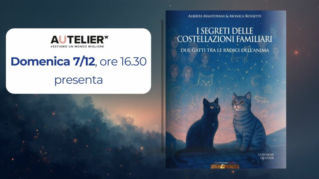 Domenica 7 dicembre, ore 16.30, un viaggio felino (e umano) tra le costellazioni dell'anima Cosa succede quando due gatti osservano la vita umana con occhi antichi e cuori leggeri? Nasce un racconto tenero e profondo , dove Margot e Lupin ci guidano tra fili invisibili, amore e guarigione. AUTelier è felice di ospitare la presentazione del nuovo libro “I segreti delle costellazioni familiari”, presentato dalle autrici Alberta Mantovani, esperta di costellazioni familiari, e Monica Rossetti, fotografa. Un incontro speciale in…